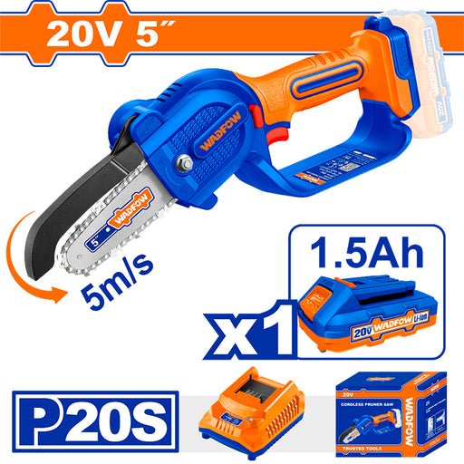 Ver todos los detallesMini Motosierra a Batería Wadfow Incluye cargador y batería Longitud de la vaina: 5" (13cm) Incluye: -1 Cadena de sierra -1 Vaina barra de sierra ...