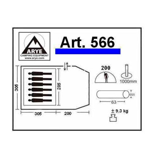 Carpa Arye 566 Igloo c/Avance cerrado 6/7 Pers. Carpa para 6/7 personas 305+200x305x200, peso 9.30 Kg. Sobretecho y avance poliéster taffeta 190T a...