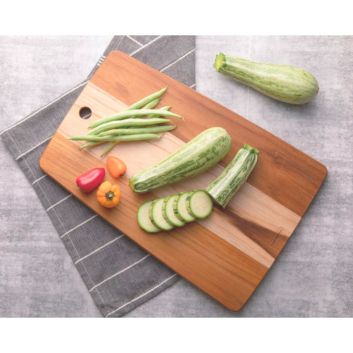 Tabla para cortar y servir producida con madera tropical muiracatiara, con acabado de barniz atóxico. Cuenta con la protección antibacteriana Micro...