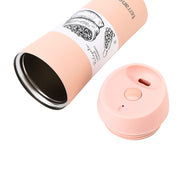 Vaso térmico Terrano Interior Acero Inox. 304. Capacidad líquida - 450 mL. Tapa rosca hermética. Botón para Abrir/Cerrar Altura 20 cm Diámetro base 6,5 cm
